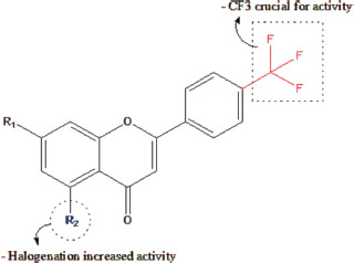 Structural activity relationship of halogenated flavone in Gram-positive bacteria