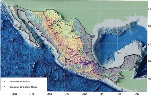 Distribución geográfica de la red nacional de estaciones meteorológicas de México