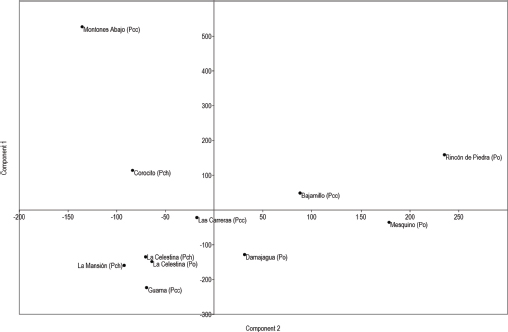 The PCA also identifies outliers such as Mesquino (Po), positioned distinctly in the lower right quadrant, and Las Carreras (Pcc), which is centrally located but slightly apart from the other clusters. These outliers suggest unique capture profiles that may be influenced by different environmental conditions or specific management practices. Component 1, which captures the largest variance, highlights the significant differences in capture profiles between sites like Montones Abajo (Pcc) and Rincón de Piedra (Po) compared to La Celestina (Pch, Po) and Guama (Pcc). Component 2 further distinguishes Mesquino (Po)’s unique characteristics, underscoring the need for specialized management practices.
