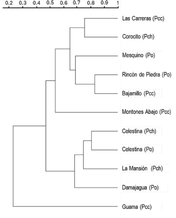 The second major cluster comprises Damajagua (Po), Las Carreras (Pcc), La Celestina, La Mansión (Pch), and Guama (Pcc). Damajagua (Po) and Las Carreras (Pcc) form a closely related sub-cluster, suggesting very similar capture profiles and potentially interchangeable management strategies. La Celestina (Pch, Po), La Mansión (Pch), and Guama (Pcc), though part of the same larger cluster, display a more nuanced relationship, with La Celestina (Pch, Po) and La Mansión (Pch) being more closely related to each other than to Guama (Pcc). This hierarchical structure underscores the importance of understanding site-specific conditions that influence I. calligraphus populations, guiding targeted pest management interventions.