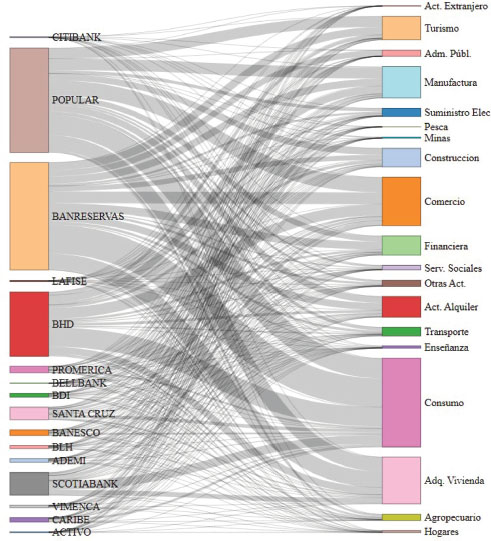 El sistema financiero dominicano está compuesto, en la actualidad, por 45 entidades de intermediación financiera, las cuales se dividen en los subsectores de bancos múltiples, asociaciones de ahorros y préstamos, bancos de ahorro y crédito y corporaciones de crédito. Como parte de los activos financieros, se encuentra la cartera de créditos (más del 50%), dicha cartera se concentra en el subsector de la banca múltiple en más del 80%. El riesgo sistémico es sensible al desempeño de estas entidades, razón por la cual la Autoridad Bancaria y Financiera, compuesta por el Banco Central y la Superintendencia de Bancos, requiere de reportes de forma periódica para monitorear y desarrollar herramientas de vigilancia del sistema financiero, con especial interés en los bancos múltiples.