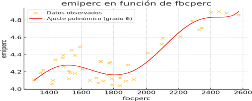 Resultados del ajuste de las emisiones per capitas en función de la formación bruta de capital per cápita en el caso de la ecuación de sexto grado