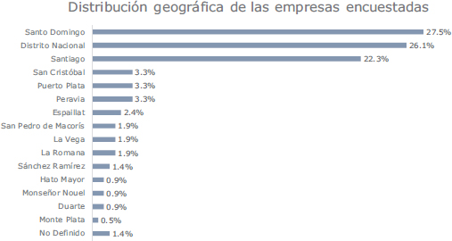 El cuestionario EBH, compuesto por seis preguntas, evaluó la escasez de profesionales, deficiencias de habilidades y necesidades de formación. Los administradores de contratación respondieron, destacando que más del 60 % de las empresas se concentran en Distrito Nacional, Santo Domingo y Santiago, reflejando su relevancia en el sector.