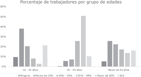 Porcentaje de trabajadores por grupo de edades