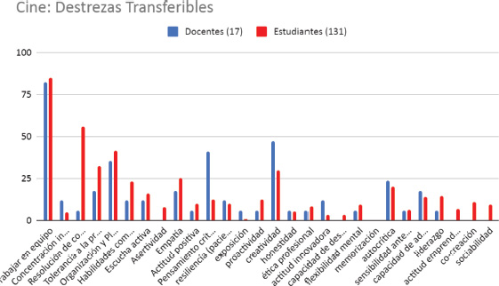 The descriptive analysis of the perceptions of transferable skills of students and teachers of a university education institution that teaches Degrees in Performing Arts, Cinematography, Music, Fine Arts, and Photography is shared. Including transferable skills in higher artistic education can favor students' personal and professional development and promote their employability. With this hypothesis, the perception of students and teachers about these skills is investigated through a comparative-descriptive study with a quantitative methodology. The results identify that the skills least valued by both groups are precisely those demanded by the employer sector. Secondly, there are apparent differences in the evaluations made by teachers and students and between the five artistic branches. Finally, there is a need to include these skills to improve the employability of graduates.