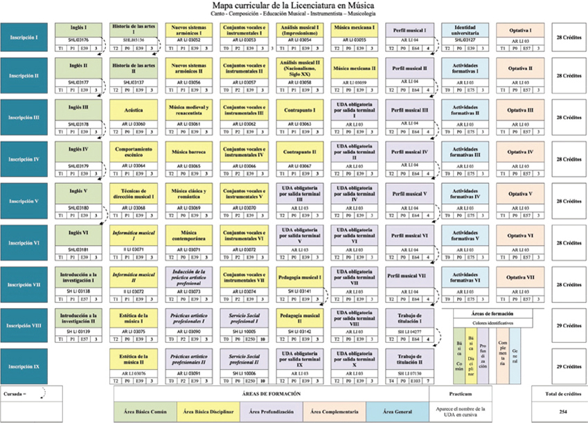 Mapa curricular del programa de Licenciatura en Música del DEMAE