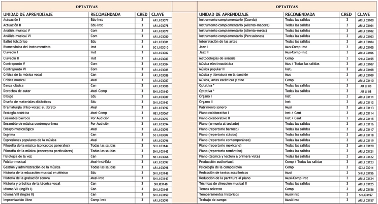 Por otra parte, el programa educativo apenas en la novena inscripción contempla como UDA obligatoria la de Música popular I y ofrece solo cuatro UDA optativas en géneros musicales no académicos. En realidad, la estructura curricular de la Licenciatura se corresponde con la descripción que Capistrán (2021) realiza de la educación superior musical, a partir de entrevistas a diez docentes de México y España, al señalar que se dedican: