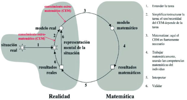 A lo largo de los meses dedicados a esta investigación, se ha hecho una selección de diversos artículos sobre MM, TIC y/o formación docente. Un enfoque con el que se acuerda en este trabajo es la diferenciación entre MM y resolución de problemas. Esta última se caracteriza por resolver preguntas matemáticas específicas focalizadas en la solución de situaciones particulares de contextos matemáticos y extramatemáticos que pueden ser abordados con métodos, técnicas y algoritmos; mientras que la MM implica la creación de modelos matemáticos para entender y resolver problemas del mundo real. Puede definirse como la interacción entre el mundo real y el mundo matemático, “una relación con una realidad física o conceptual compleja para la cual se plantea un modelo que la representa y que describe aquellos aspectos sustanciales y relaciones funcionales” (Chavarría Vázquez y Gamboa Araya, 2024, p.3).