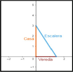 Mediante esta propuesta, lo que se intenta es introducir la relación pitagórica que establece que donde c1, c2 (longitud de los catetos) hacen referencia a la longitud de la casa y la vereda, indistintamente, y h (longitud de la hipotenusa) hace referencia a la longitud de la escalera.