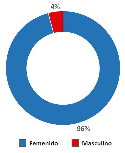 De acuerdo a los resultados obtenidos, en la gráfica 1 se muestra que un 96%, es decir, 197 de los casos de nódulos tiroideos se presentan en mujeres, mientras que solo un 4%, equivalente a 9 casos, son identificados en hombres.