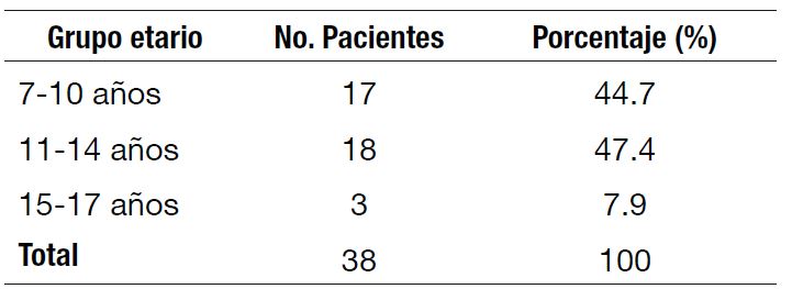 De los casos estudiados, el 21, 55.3% llega al servicio con más de 11 años de edad (ver cuadro 1).