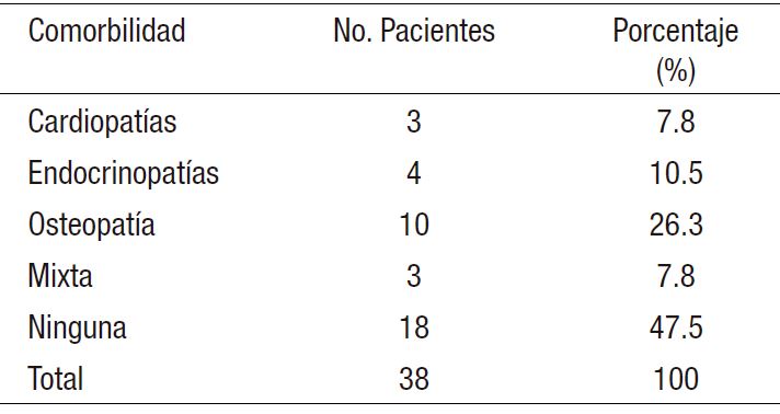 La osteopatía, la endocrinopatía y la cardiopatía fueron las comorbilidades más reportadas (ver cuadro 7).