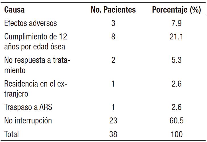 Cuadro 9: Causas de interrupción del uso de hormona de crecimiento en las pacientes con Síndrome de Turner del Programa de Alto Costo