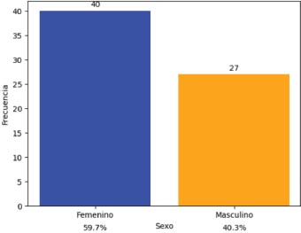 El 59.7 por ciento de los pacientes incluidos en el estudio pertenecen al sexo femenino, frente a 40.3 por ciento que pertenecen al sexo masculino.