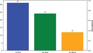 El 46.3% de los pacientes habían fallecido antes de 2 años y sólo el 35.8% se mantenían vivos, con una mediana de 20 meses.