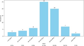 El rango de edad más afectado se encontró entre los 50 a 59 años en un 37.4 por ciento, seguido de los comprendidos entre 60 a 69 años en un 29.9 por ciento. El rango de edad menos afectado comprendió los pacientes mayores de 80 años en apenas un 2.9 por ciento y llama la atención el 19 por ciento de pacientes menores de 50 años.