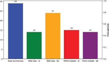 El 43.3 por ciento de los pacientes del estudio habían presentado enfermedad recurrente. Según el estado mutacional, los tumores que más frecuentemente recurrieron fueron los tumores KRAS mutado en el 51.7 por ciento, frente al 36.8 por ciento de los tumores wild-type.
