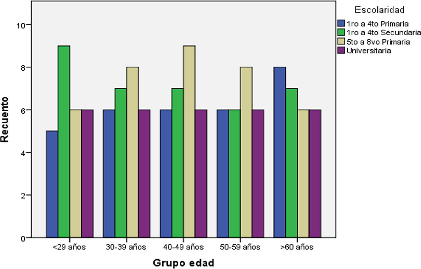 En términos generales, el rendimiento y las variaciones de las pruebas psicométricas en relación con la edad fue mejor mientras menos años tenía la persona. De igual manera, mientras mayor era el grado de escolaridad alcanzado, mejor desempeño las pruebas psicométricas comparando primaria, secundaria y superior (Grafico 3).
