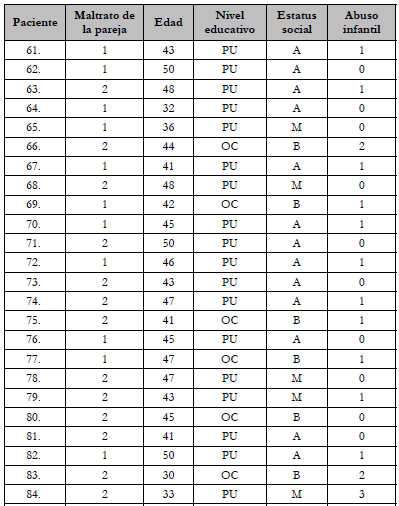 El problema que se plantea es de la posible relación entre dos variables: el maltrato de la pareja y el abuso infantil, en la familia dominicana. Con el propósito de desarrollar y resolver el problema, se evaluó un grupo de 90 pacientes masculinos y adultos con respecto a las variables estudiadas en el marco de una psicoterapia psicodinámica. El estudio se realizó con pacientes de la consulta privada residentes en Santo Domingo, pertenecientes a todas las clases sociales y con niveles educativos diferentes ―profesionales universitarios, técnicos y obreros calificados―, que fueron sometidos a una psicoterapia breve de orientación analítica.