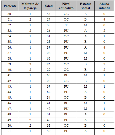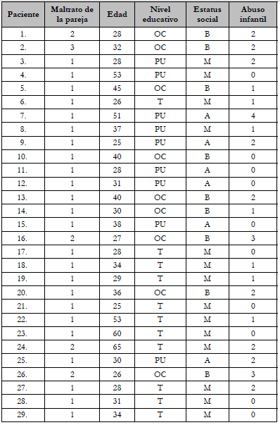 Tabla N.° 1 Resultados sobre el maltrato de la pareja y el abuso infantil
