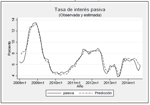 El modelo econométrico especificado para la tasa de interés pasiva es el siguiente.