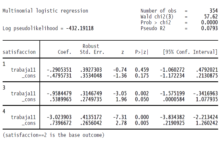 5.4 Modelo logístico multinomial satisfacción con los ingresos en función a estar trabajando en 2011