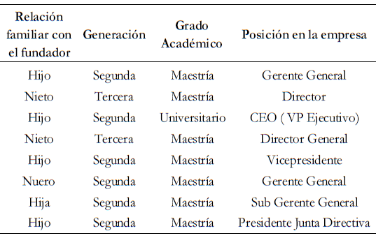 En promedio, el 50% de los hijos de los fundadores se encuentran trabajando en la empresa, los demás se han dedicado a otros negocios o carreras profesionales.