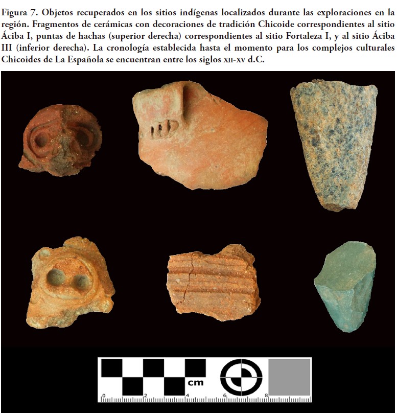 El estudio de ese contexto se ha distinguido por la proliferación de ideas e hipótesis esencialmente derivadas de los datos históricos, en conexión con escasas informaciones obtenidas de las prospecciones arqueológicas (Boyrie Moya, 1960; Guerrero y Veloz Maggiolo, 1988; Ortega, 1988; Ortega y Veloz Maggiolo, 1989; Peguero, 1990). Un resumen de los resultados de esa relación señala hacia el énfasis en los siguientes aspectos: