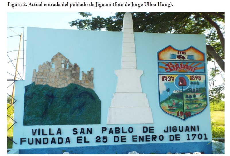 “Por diciembre de 1707 Miguel de Aguilar, Sebastián Núñez y Matheo Ximénez, indios naturales residentes en el barrio y Parrochia de S. Juan Evangelista de la Villa de Bymo y Sta Ana de la susodha Villa por sí y en nombre de los demás naturales vecinos de aquella Villa y citadas feligresías llevaron recurso de apelación de un auto provehído por D. Adrián Ricardo de Armandias, Alcalde Ordinario de dha Villa en que mandaba que dentro de cierto término y con penas pecuniarias aquellos naturales pasasen a hacer casas y población en el partido llamado de Jiguaní, y expusieron que siendo ellos como era de tiempo inmemorial feligreses de las enunciadas dos Parroquias extramuros de la Villa de Bayamo (…) Miguel Rodríguez a quien daban nombre de Teniente del Pueblo de Jiguaní..., les incitaba a pleitos para que costeandole pudiese comparecer en los Tribunales Superiores a pretesto de que se les usurpaban sus tierras y otros semejantes catequizándolos con que les haría República por haber conseguido se erigiese Curato en el partido de Jiguaní e induciendo a el Cura (…) a que les fomentase para conseguir que diferentes personas de todas calidades tanto de dha Villa como de fuera que les ofrecían tierras en que poder usar de las labranzas de tabaco que concurriendo con este pretexto muchas gentes pasarían a empadronarlos por vecinos y feligreses de dho Curato para que hallándose mucho número (…) y con que se fabricasen 6 u 8 ranchos de paja en el paraje donde tenían una corta parroquia de lo mismo, podrían más comodamente quitar las tierras a los circunvecinos diciendo hallarse cortas las que poseían para tantas familias (…) por cuya razón el Rodríguez había intentado con la Justicia del Bayamo suponiendo ser mandato de la R. Aud. que compeliese a los que asistían en dha Parrochia y Curatos de S. Juan y Sta Ana para que pasasen a residir en el partido de Jiguaní (…) Prosiguieron representando el prejuicio que se le infería en perder sus casas y labranzas adquiridas con sus trabajos; que jamás habían sido feligreses del partido de Jiguaní, sino solo de S. Juan Evangelista y de Sta. Ana...” [Archivo Histórico Municipal de Jiguaní. Documentos del Archivo General de Indias transcritos por Enrique O. Lacalle, Legajo 1617 no. 3].