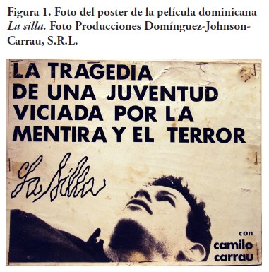 En República Dominicana, luego de 31 años de censura en los medios audiovisuales tras la dictadura de Rafael Leónidas Trujillo, el director Franklin Domínguez realiza la primera película de denuncia social titulada La silla (1963) (figura 1). Un monólogo protagonizado por Camilo Carrau donde se cuenta de manera detallada los hechos históricos que marcaron las tres décadas de la tiranía de Trujillo. Es la historia de un joven dominicano llamado Luís Manuel González, al que se le atribuye haber traicionado a sus compañeros cuando estuvieron en la cárcel, quienes fueron acusados de formar un complot para asesinar a Trujillo, relatando lo que es pasar de héroe a traidor.