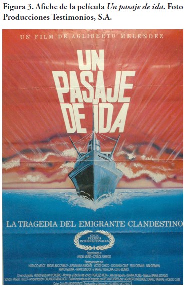 Al abordar esta temática, la presencia en la cinematografía dominicana del filme Un pasaje de ida (1988; figura 3), de Agliberto Meléndez, podría definirse como la primera producción dominicana en hacer uso del abordaje argumental sobre la migración. Apoyado en un hecho real, hace duras críticas hacia aquellos involucrados en los viajes ilegales, como han sido los funcionarios gubernamentales y militares.