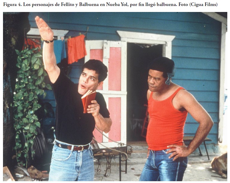 Nueve años después dentro del espectro de las realizaciones cinematográficas dominicanas, se incorporó otro filme que ofreció una cara fresca y distinta al tema de la migración: Nueba Yol: por fin llegó Balbuena (1995; figura 5) y Nueba Yol iii: bajo la nueva ley (1997), ambas del cineasta Ángel Muñiz. Estas producciones otorgan un matiz diferente al tema de la migración al utilizar el personaje de Balbuena para describir los sinsabores de un inmigrante dominicano cuando se enfrenta a la realidad de la urbe neoyorkina.