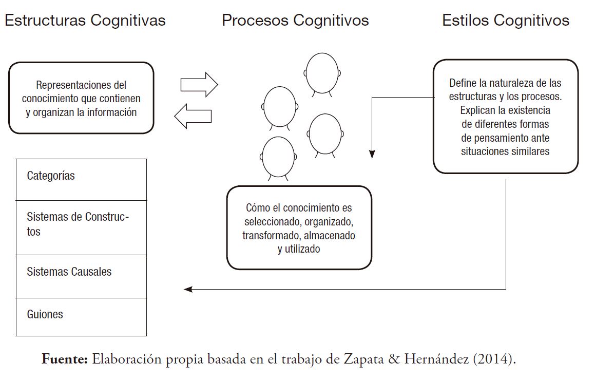 En la figura anterior se distinguen tres niveles de análisis del fenómeno cognitivo: las estructuras, los procesos y los estilos cognitivos. A continuación, se describen estos niveles de análisis según Zapata & Hernández (2014).