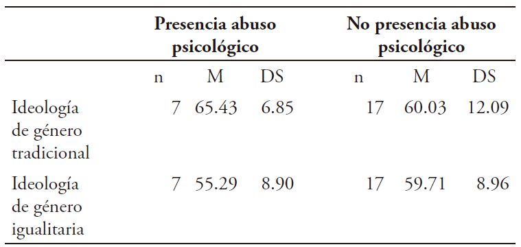 Tabla 1. Ideología de género en mujeres con presencia o no de abuso psicológico