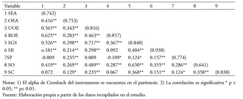 Para poder obtener la influencia de los factores de inteligencia emocional sobre las variables de autoliderazgo, primeramente, se realizaron las correlaciones bivariadas y el cálculo de las alphas de Cronbach para los ítems. Los resultados se muestran en la tabla 2.