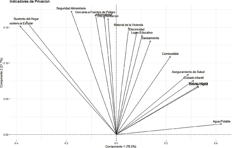 Palabras clave: indicador de pobreza multidimensional, política social, análisis de componentes principales, estructura de ponderaciones.