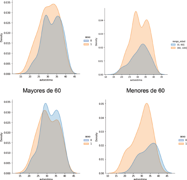 Por otra parte, se ha identificado que las mujeres presentan mayor riesgo de exclusión del mercado laboral y pobreza. Por lo cual tienden a presentar menores niveles de autoestima. Sin embargo, los hombres experimentan una reducción más drástica de su autoestima y esta alcanza el nivel de las mujeres, como consecuencia de la mayor importancia que estos le otorgan al estatus socioeconómico (Pinquart y Sörensen 2000; Orth y Trzesniewski et al., 2010; Lee, Lee y Song, 2019; Sánchez y Medrano et al., 2021).