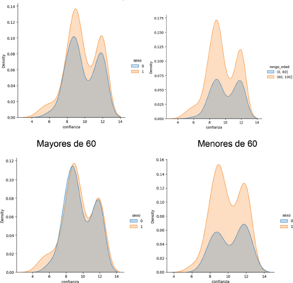 Resalta que, durante las entrevistas en profundidad, las personas mayores indicaron que durante la pandemia por COVID-19 interactuaron menos con sus parientes y tendieron a sentir una menor preocupación por parte de estos frente a su bienestar. Hecho que pudiera explicar esta brecha de confianza respecto a las personas más jóvenes.