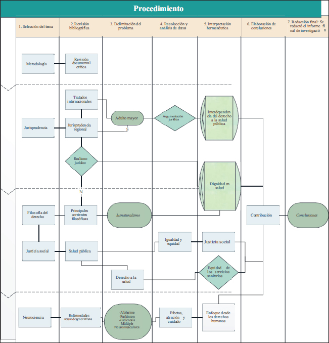 Las personas con una patología neurológica experimentan múltiples obstáculos para ejercer su derecho a la salud, tales como la carencia de información, de recursos, la discriminación, la estigmatización, la violación de su autonomía y dignidad. Es importante que el adulto mayor cuente con una calidad de vida para su bienestar física, mental y espiritual, resultando imperativo examinar la optimización de los servicios sanitarios, especialmente en el caso de pacientes con patologías neurodegenerativas. El derecho de la salud se materializa en la calidad de los servicios sanitarios como un inicio en el desenvolvimiento de la dignidad de la persona mayor en estado de vulnerabilidad neurológica. El objetivo es conocer la relación del derecho de la salud y la dignidad como principio de justicia social en México. Impulsando la creación de políticas públicas para la prevención, el acceso oportuno a tratamientos especializados, la formación de profesionales de la salud en este campo, así como en la promoción de estilos de vida saludables que contribuyan a la prevención de estas enfermedades. Mediante el estudio de corte cualitativo complementado por método hermenéutica jurídica y el método fenomenológico hermenéutico de Paul Ricoeur, es evidente que la dignidad en la vejez irá a la par con el ejercicio de los derechos a la salud, siempre que se asegure la equidad en los servicios sanitarios, le seguirá la calidad de vida de los adultos mayores en su última etapa del ciclo del desarrollo humano.