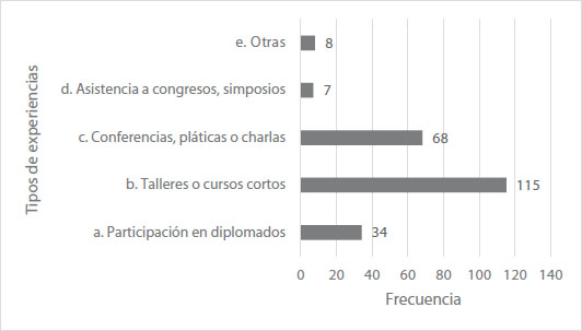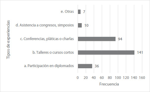 Las experiencias formativas reportadas fueron sido diversas. La Figura 4 muestra la frecuencia con la que se reportó cada tipo de experiencia.