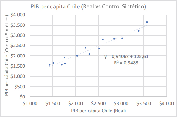Estimación del PIB per cápita real de Chile sintético, si nunca se hubiese aplicado el programa de COP.