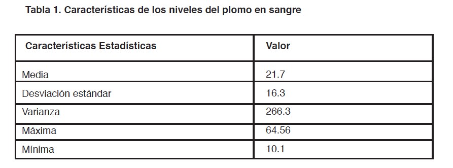 Los escolares con niveles de plomo elevados se presentaron entre 11 y 14 años de edad. La media aritmética de los niveles del plomo en sangre fue de 21.7 µg/dl, valor que dobla el nivel que se acepta como “límite permisible” por encima de 10 µg/dl (tabla 1).