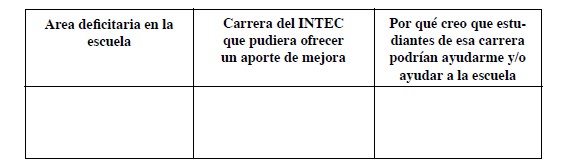 2. Señale en la siguiente matriz el aporte a realizar estudiantes de las carreras impartidas en el INTEC (Medicina, Ingenierías diversas, carreras de Negocios, Psicología y Trabajo Social) para mejorar, en alguna de las áreas ya señaladas, los aprendizajes de la niñez, o los medios para ello. Razone su respuesta
