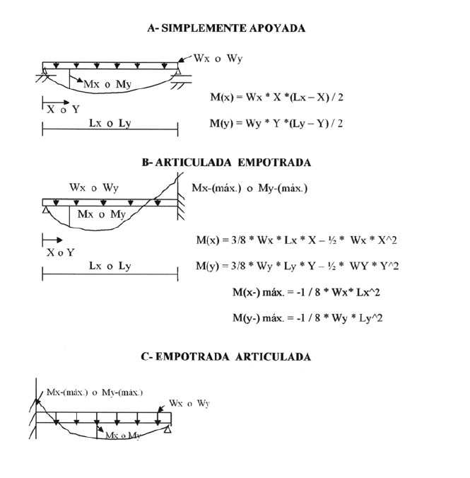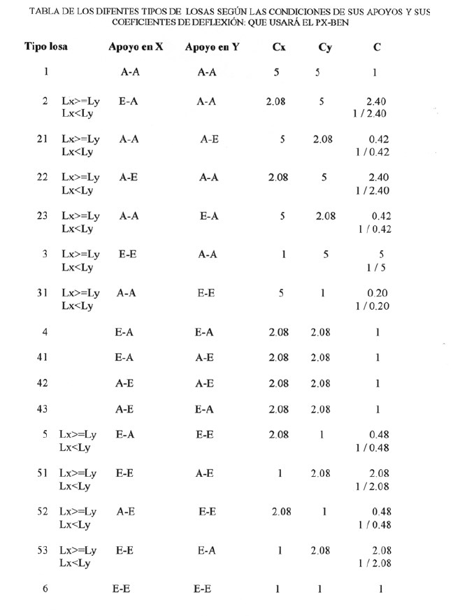 Las losas tipos 2, 21, 22, 23, 3, 31, 5, 51, 52, 53 con apoyos diferentes en ambas direcciones, tendrán un coeficiente C para igual , y otro para
