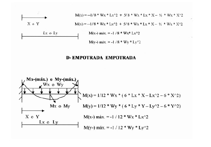 Los momentos considerados en los apoyos continuos son los momentos de empotramientos perfectos. En los apoyos discontinuos de las losas donde los puntos de inflexión, según la teoría elástica, están en dichos apoyos, el PX-BEN asume que los puntos de inflexión para estos casos están en Lx / 7 ó Ly / 7, según la dirección analizada, medido a partir de la cara interior del apoyo.