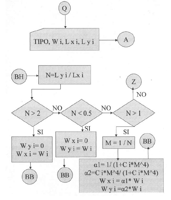 Una vez suministrado el conjunto de datos el programa, según el tipo de losa, asignará los coeficientes de deflexión correspondientes y calculará la relación entre las longitudes de las losas, y , para fijar su condición de trabajo en una o dos direcciones (Para una dirección , para dos direcciones . Esto es con la finalidad de determinar qué porción de la carga total le corresponderá a cada dirección de la losa.