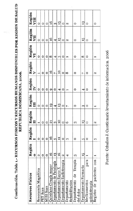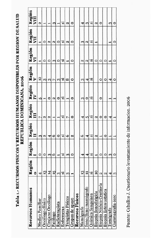 - Los resultados del levantamiento de información revelan que en las regiones O y II de salud es donde se cuenta con la mayor cantidad de recursos físicos y humanos, para la prestacion de los servicios a los pacientes afectados con cáncer de mama.