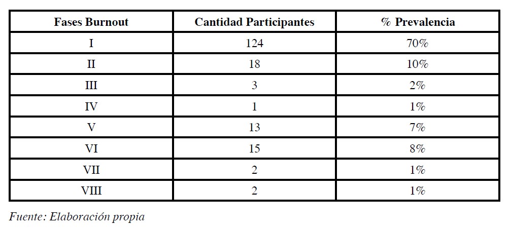 - Burnout leve en los individuos que puntuaron en las fases I, II ó III,