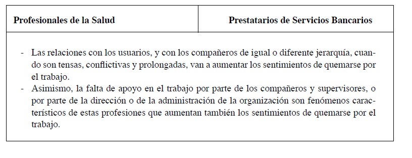 “Una sentencia reciente del Tribunal Supremo (octubre del 2000), ratificando la sentencia de 2 de noviembre de 1999 dictada por la Sala de lo Social del Tribunal Superior de Justicia de la Comunidad Autónoma del País Vasco, respalda legalmente esa importancia al reconocer el síndrome de quemarse por el trabajo como una dolencia psíquica causante de períodos de incapacidad temporal, y como un accidente laboral” (Gil-Monte, 2001).