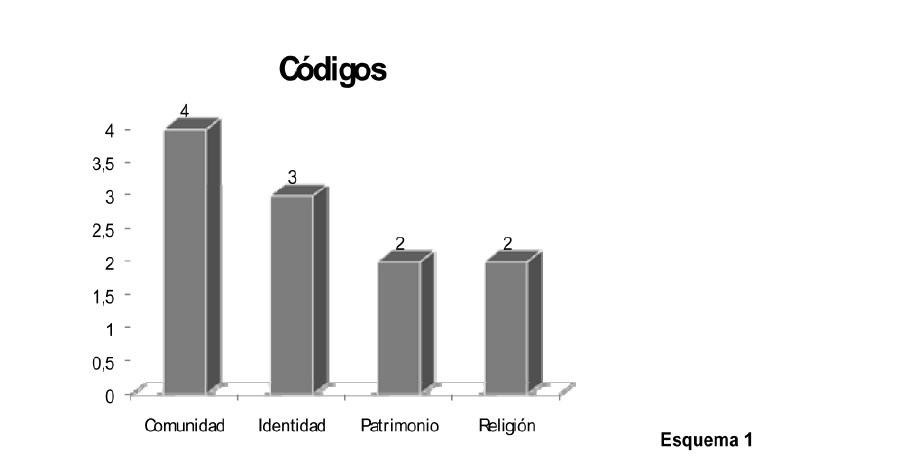 Los códigos o categorías utilizados con más frecuencia en las tesis de grado son: comunidad; identidad; patrimonio cultural; tradición; religión y sociocultural.